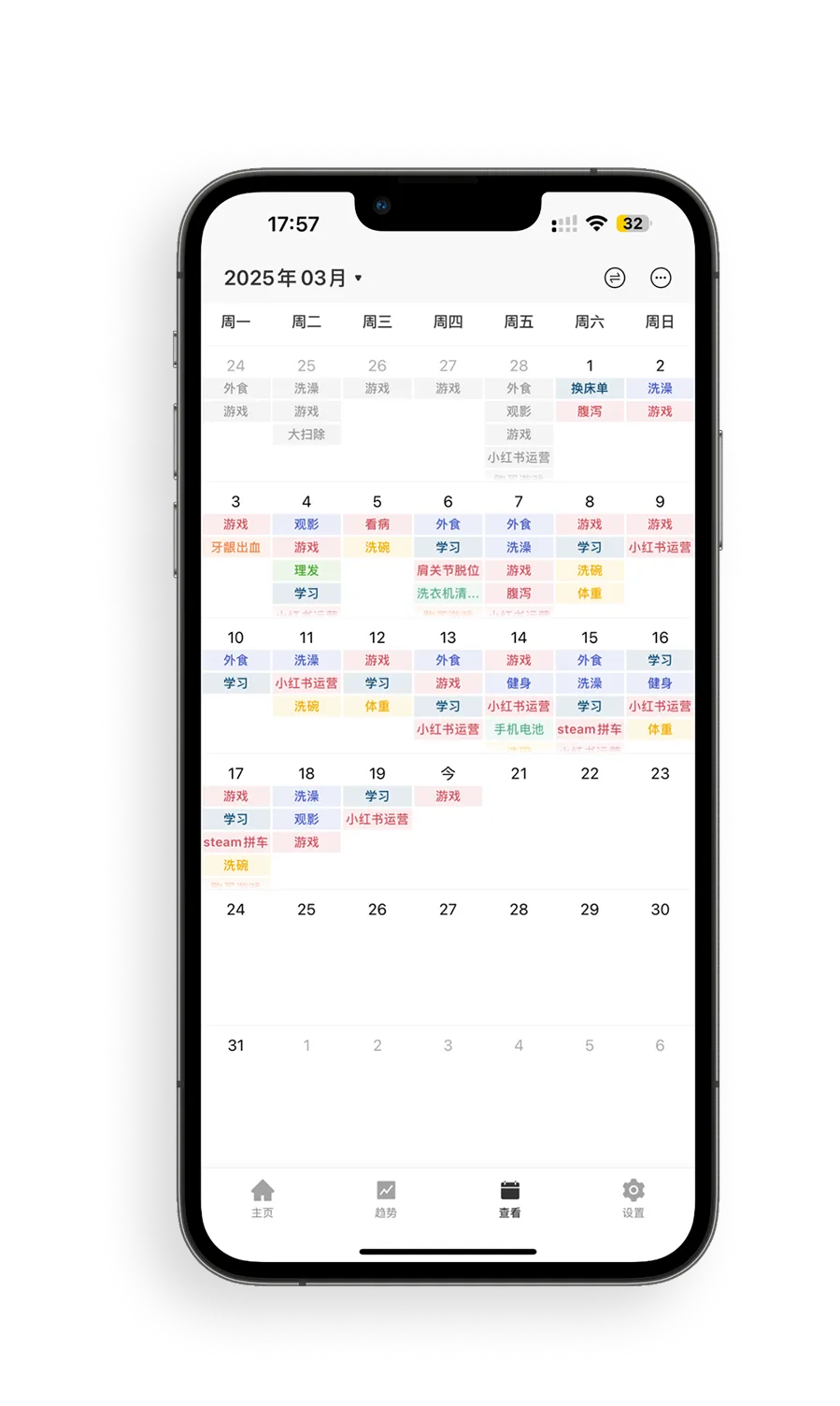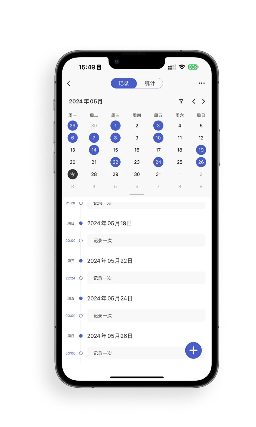 - 多种方式查看记录(时间轴、月视图、周视图等)